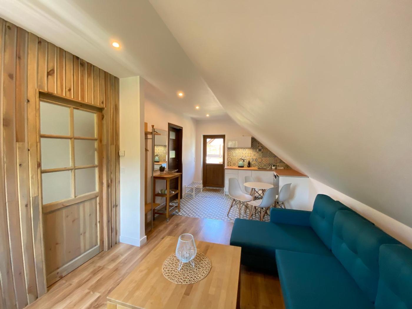 Apartament z 1 sypialnią. Featuring a private entrance, this apartment is comprised of 1 living room, 1 separate bedroom and 1 bathroom with a bath and a bidet. Guests will find a refrigerator and kitchenware in the kitchenette. The apartment also has a barbecue. Among the room amenities are a tea and coffee maker, a seating area, a dining area as well as an outdoor dining area and garden views. The unit offers 2 beds. Apartament - 4 osobowy. Powierzchnia pokoju ok.: 50 mkw.