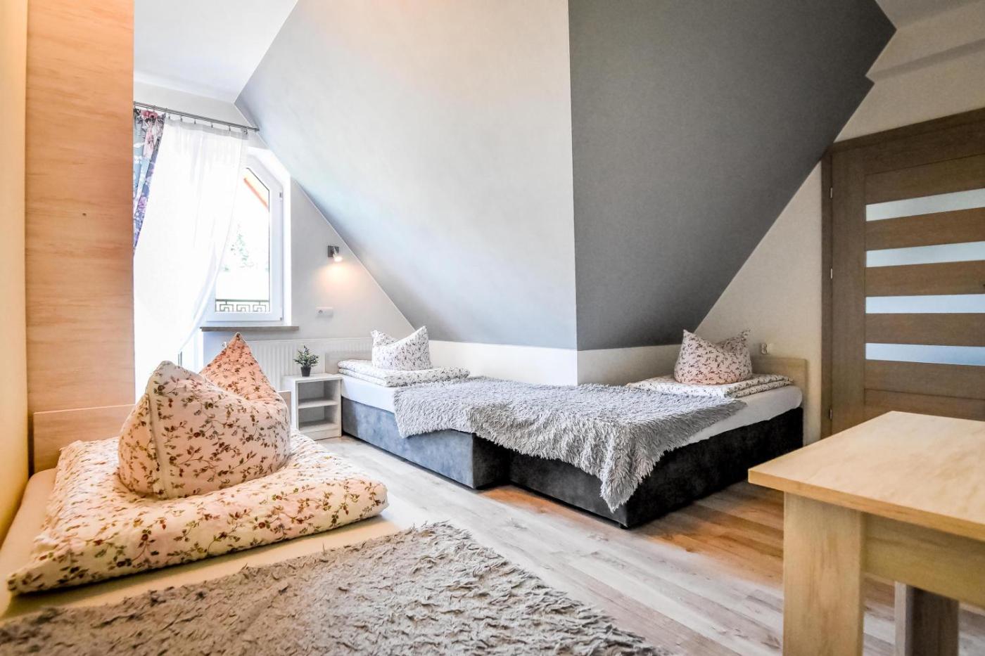 Pokój trzyosobowy. This triple room offers a flat-screen TV. The unit offers 3 beds. Pokój Trzyosobowy - 3 osobowy. Powierzchnia pokoju ok.: 18 mkw. ;