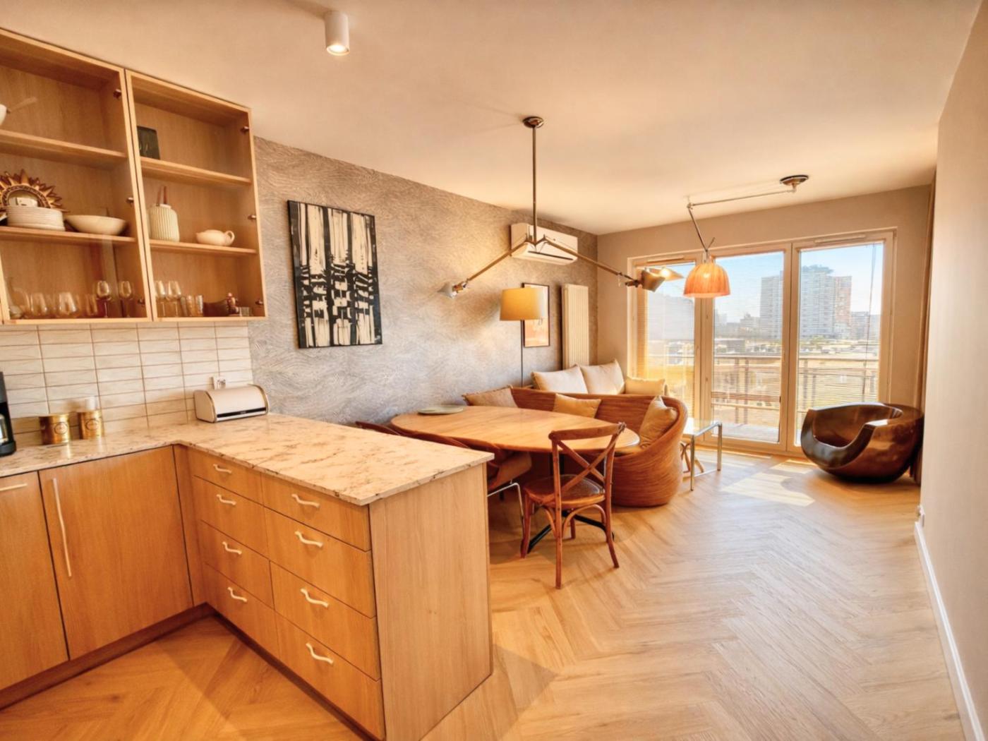 W apartamencie zapewniono balkon, kilka sypialni (3), salon z telewizorem z płaskim ekranem, kuchnię ze standardowym wyposażeniem, takim jak lodówka i zmywarka, a także kilka łazienek (2) z bidetem. Goście mogą podziwiać widok na miasto. W apartamencie zapewniono ręczniki i pościel.