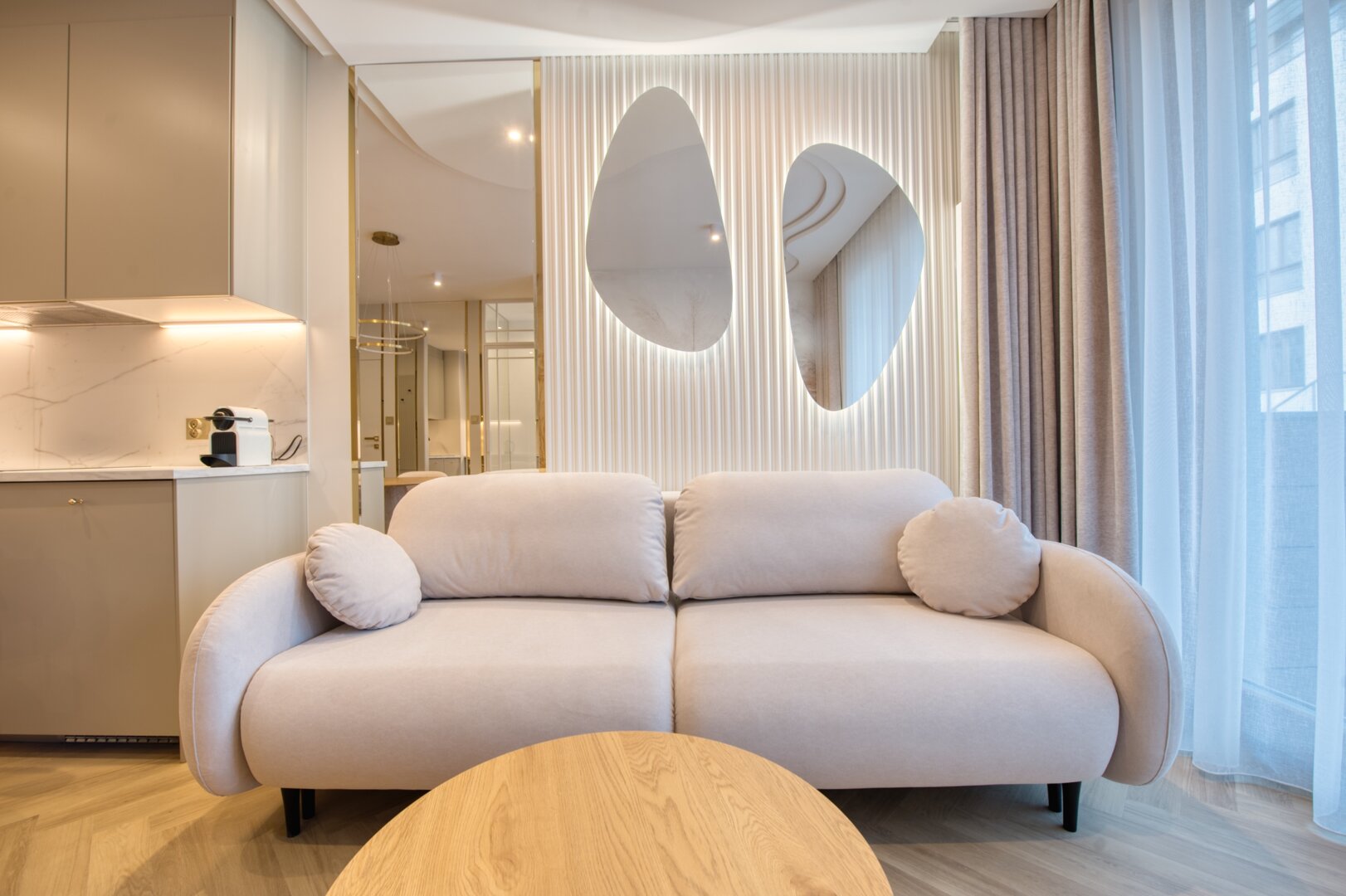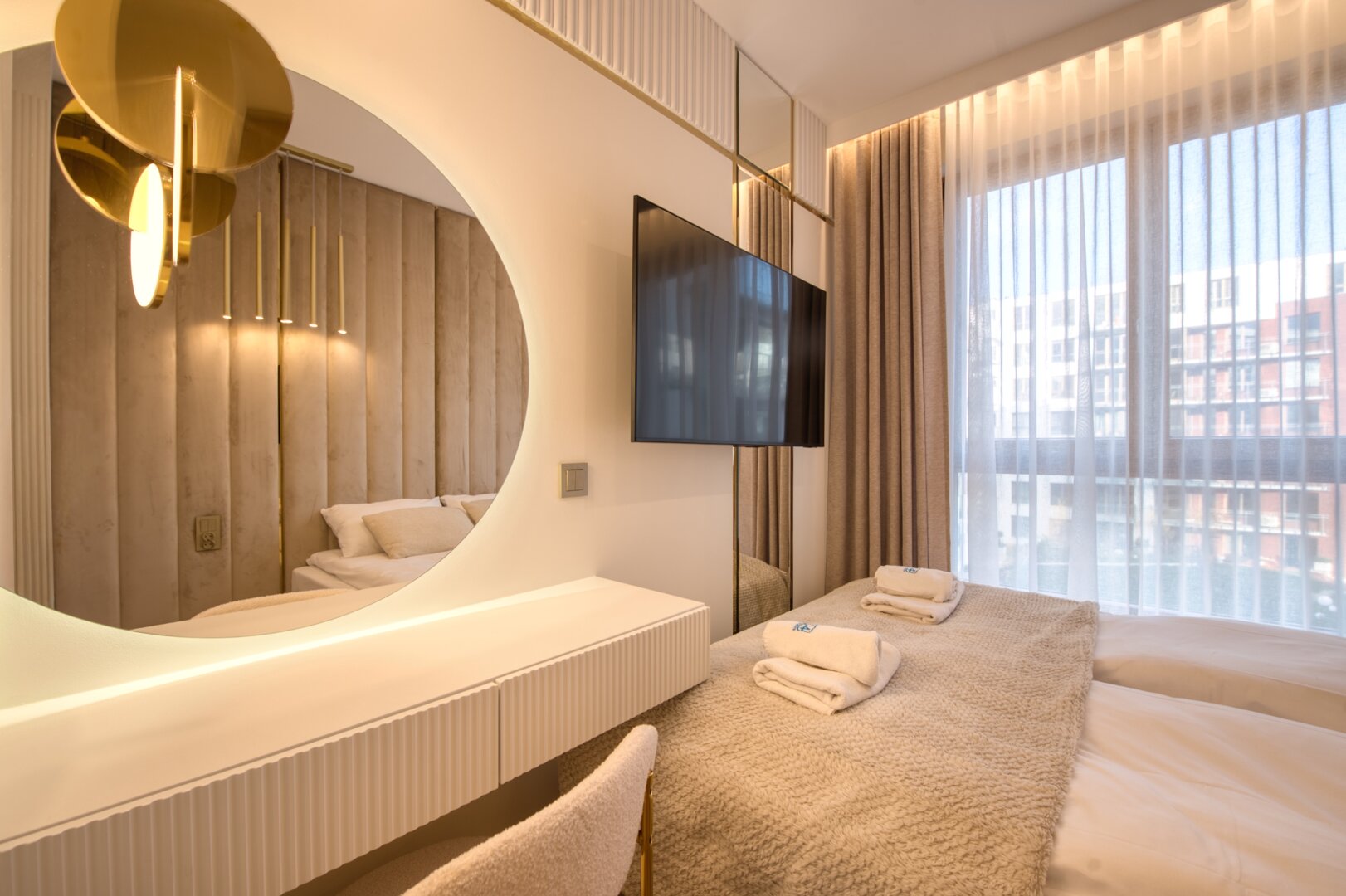 Cashmere to nowo oddany, komfortowy i bardzo nowoczesny apartament do wynajęcia w prestiżowej inwestycji Garnizon Gdańsk – jednej z najbardziej pożądanych lokalizacji w dzielnicy Wrzeszcz. Przeznaczony dla maksymalnie 4 osób, apartament stanowi idealną propozycję na pobyt służbowy lub urlop nad morzem. Apartament składa się z: przytulnej sypialni w eleganckim stylu, wyposażonej w wygodne łóżko małżeńskie, przestronną szafę oraz ergonomiczne biurko do pracy zdalnej, jasnego salonu z aneksem kuchennym, w którym znajduje się rozkładana sofa, stół jadalniany, telewizor z płaskim ekranem i dostępem do kanałów streamingowych, w pełni wyposażonego aneksu kuchennego, zawierającego nowoczesne sprzęty: płytę indukcyjną, piekarnik, lodówkę, zmywarkę oraz ekspres do kawy, funkcjonalnej łazienki z prysznicem, pralką oraz kompletem ręczników i kosmetyków hotelowych, balkonu z widokiem na zielony dziedziniec, idealnego na poranną kawę lub wieczorny relaks – wyposażonego w meble ogrodowe. Mieszkanie położone jest w sercu nowoczesnego osiedla Garnizon, które słynie z wyjątkowej atmosfery, bogatej oferty gastronomicznej i kulturalnej. W pobliżu znajdują się modne restauracje, kawiarnie, sklepy, tereny rekreacyjne oraz liczne miejsca pracy i biznesu. To doskonała lokalizacja dla osób ceniących miejski styl życia i wygodę – blisko centrum Gdańska, z łatwym dostępem do komunikacji miejskiej, dworca PKP oraz trójmiejskiej obwodnicy.