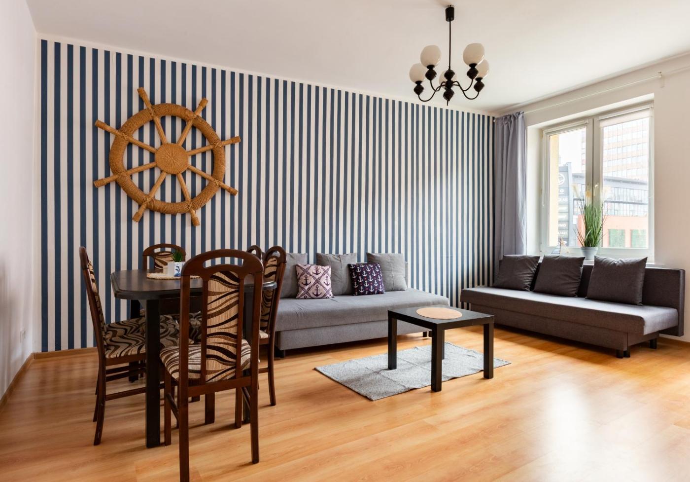 Apartament z 1 sypialnią. Boasting a private entrance, this apartment includes 1 living room, 1 separate bedroom and 1 bathroom with a shower and a hairdryer. Guests can make meals in the kitchen that has a stovetop, a refrigerator, a dishwasher and kitchenware. Featuring a balcony with city views, this apartment also offers a washing machine and a flat-screen TV. The unit has 3 beds. Apartament - 6 osobowy. Powierzchnia pokoju ok.: 50 mkw.