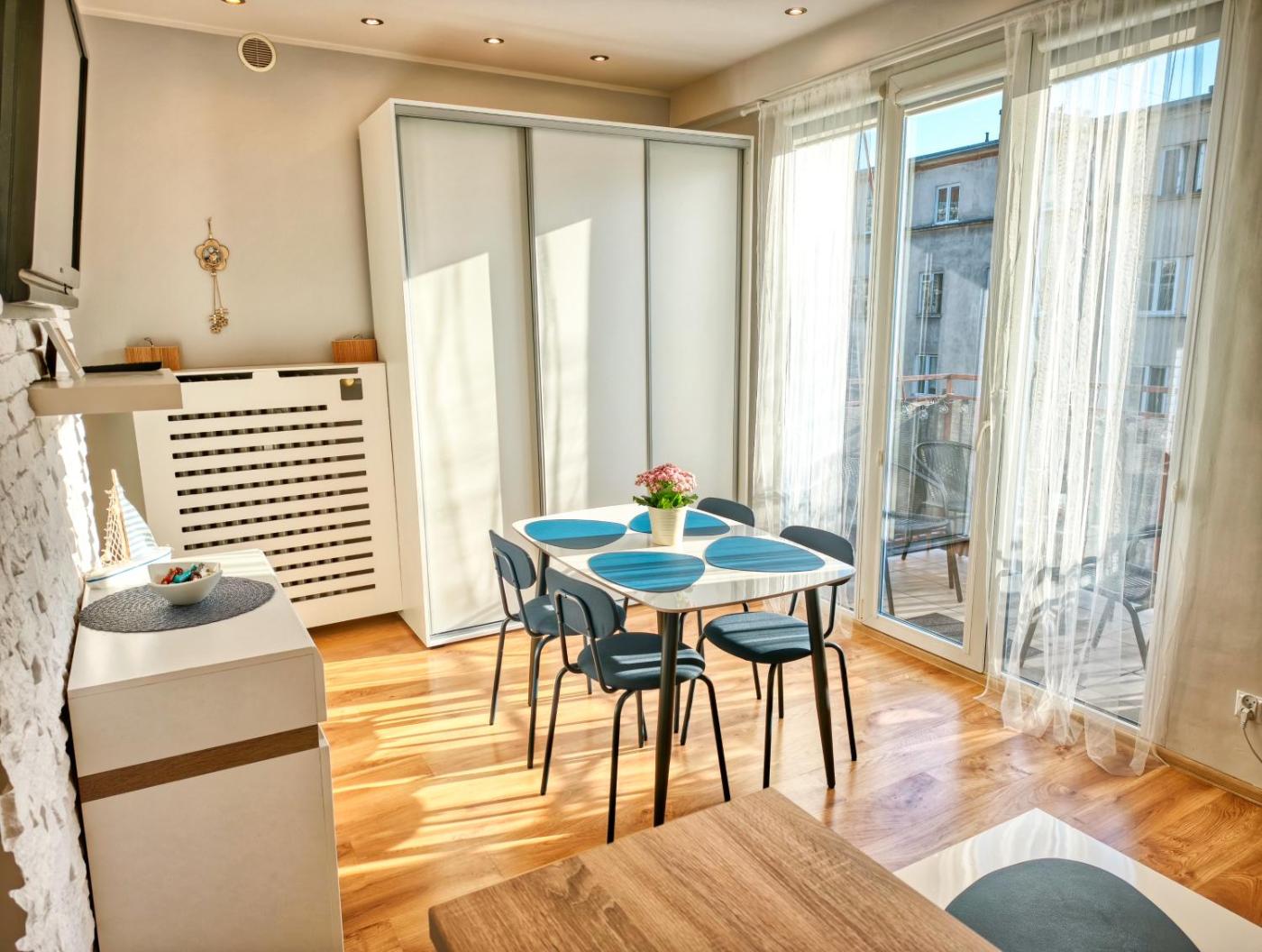 Apartament z 1 sypialnią. This apartment consists of 1 living room, 1 separate bedroom and 1 bathroom with a shower and free toiletries. The fully equipped kitchen has a stovetop, a refrigerator, kitchenware and an oven. This apartment features a washing machine, flat-screen TV with cable channels, city views, as well as chocolate for guests. The unit offers 2 beds. Powierzchnia pokoju ok.: 35 mkw.