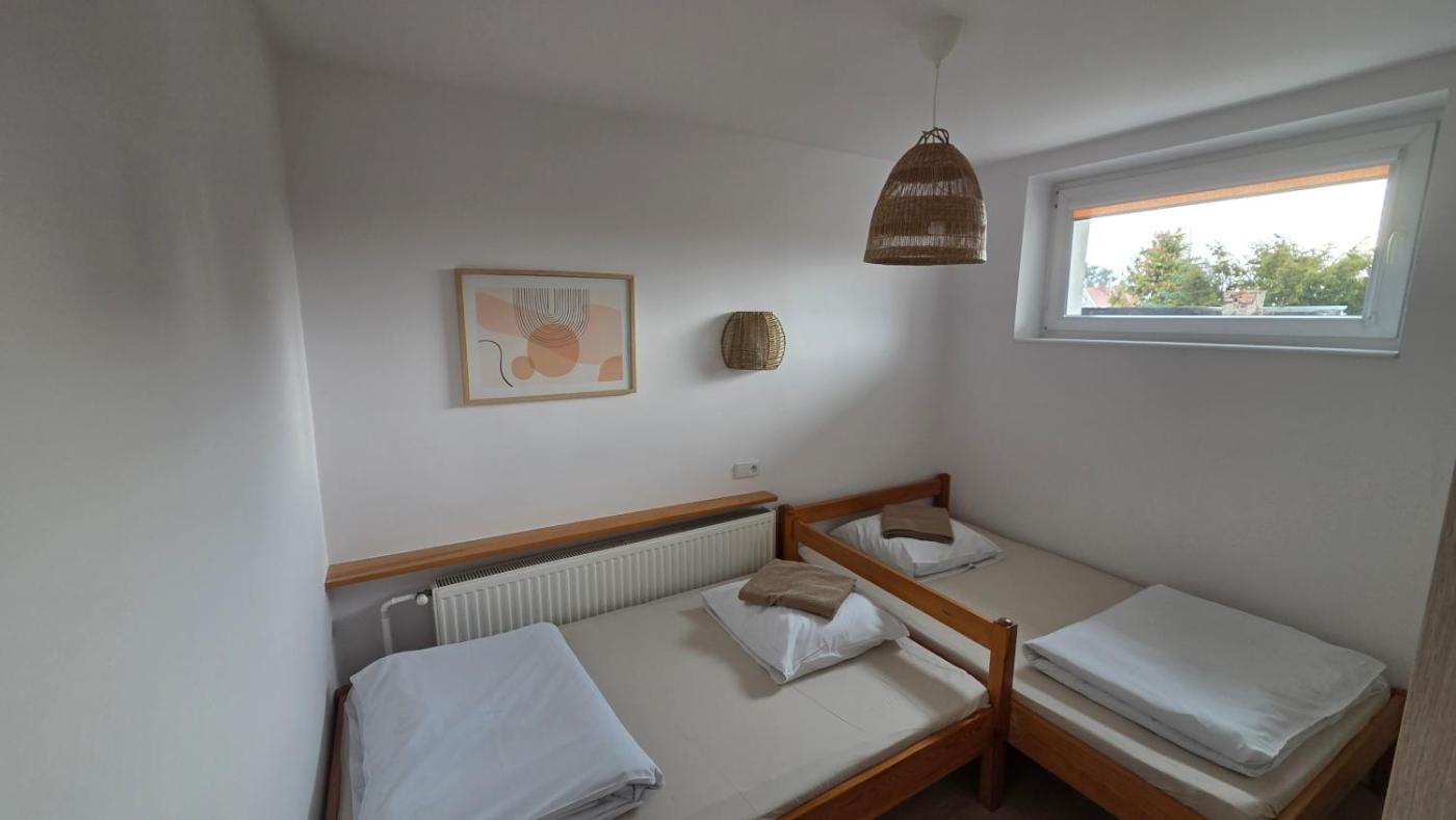 Duży pokój z 2 łóżkami pojedynczymi. The twin room provides soundproof walls, a wardrobe, as well as a private bathroom featuring a shower and a hairdryer. In the well-fitted kitchenette, guests will find a stovetop, a refrigerator, kitchenware and a toaster. The twin room features an electric kettle, a high chair for children, parquet floors, heating and a flat-screen TV. The unit offers 2 beds. Powierzchnia pokoju ok.: 19 mkw. ;
