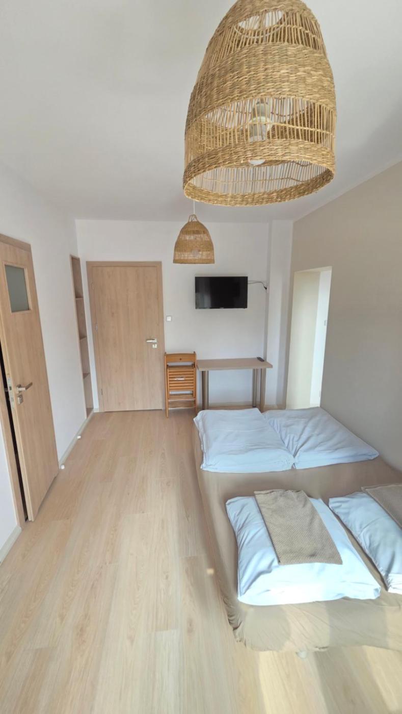 Studio. Meals can be prepared in the kitchenette, which features a stovetop, a refrigerator, kitchenware and a toaster. The studio features soundproof walls, a wardrobe, as well as a private bathroom boasting a shower and a hairdryer. The unit has 2 beds. Powierzchnia pokoju ok.: 19 mkw. ;