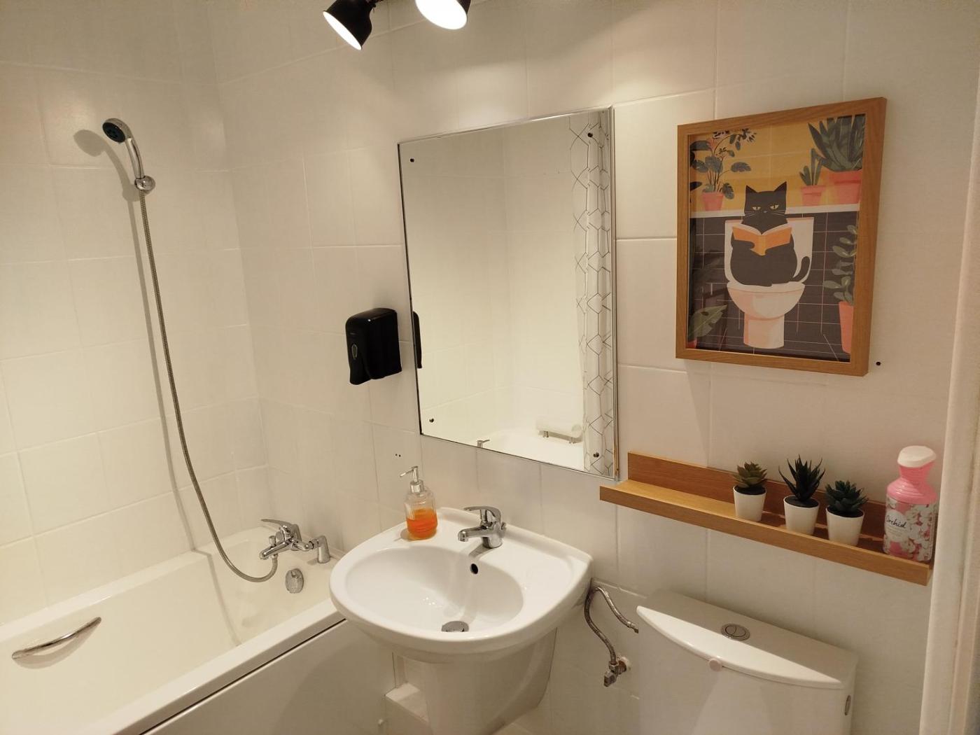 W apartamencie do dyspozycji gości przygotowano sypialnię (1), kuchnię ze standardowym wyposażeniem, takim jak lodówka i mikrofalówka, a także łazienkę (1) z wanną. Wyposażenie obejmuje także telewizor z płaskim ekranem.