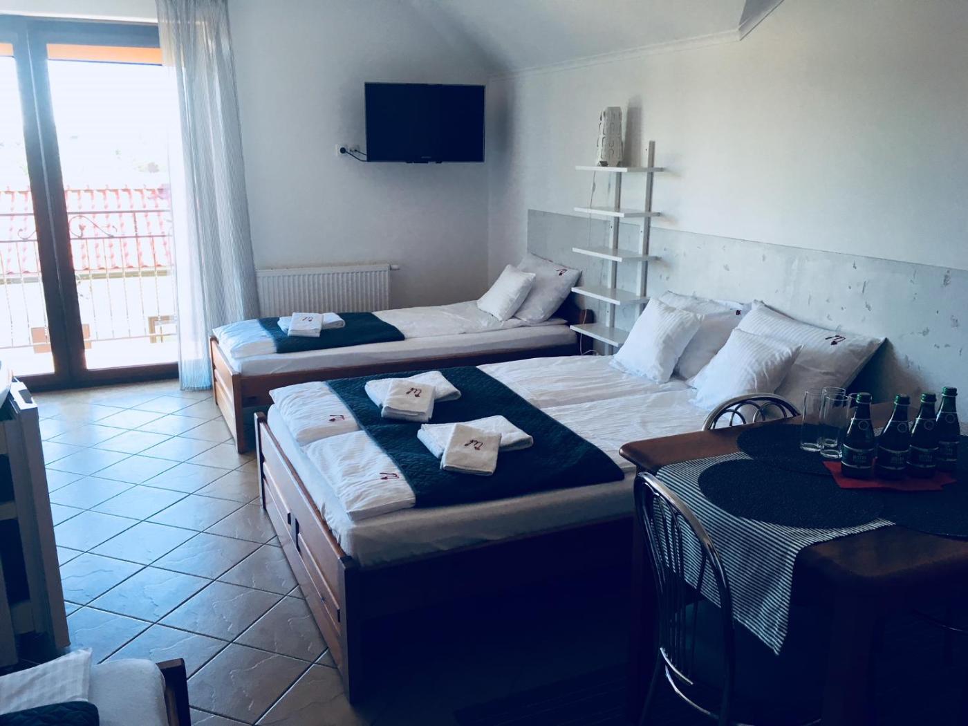 Pokój dwuosobowy. The double room offers soundproof walls, a wardrobe, as well as a private bathroom boasting a walk-in shower. This double room has an electric kettle, a tiled floor, a flat-screen TV and a balcony. The unit has 1 bed. Pokój Dwuosobowy - 2 osobowy. Powierzchnia pokoju ok.: 16 mkw. ;
