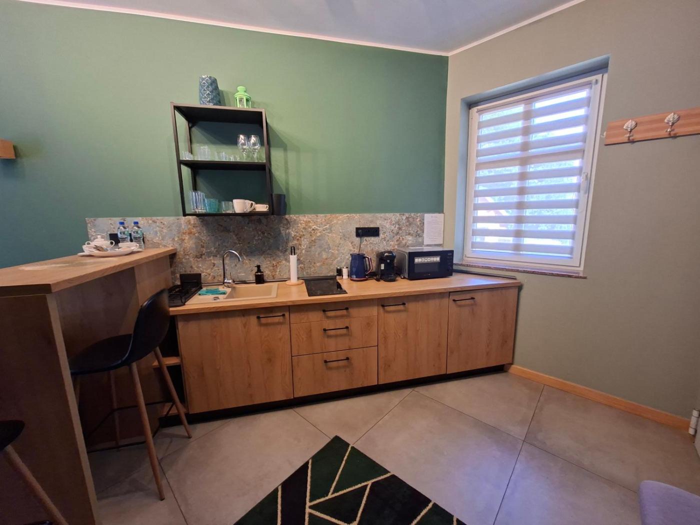 Apartament z tarasem. Boasting a private entrance, this apartment includes 1 living room, 1 separate bedroom and 1 bathroom with a shower and a hairdryer. The well-equipped kitchen has a stovetop, a refrigerator, kitchenware and a microwave. A seating area with a flat-screen TV, a tea and coffee maker and a terrace are offered in this apartment. The unit has 2 beds. Apartament - 3 osobowy. Powierzchnia pokoju ok.: 32 mkw.