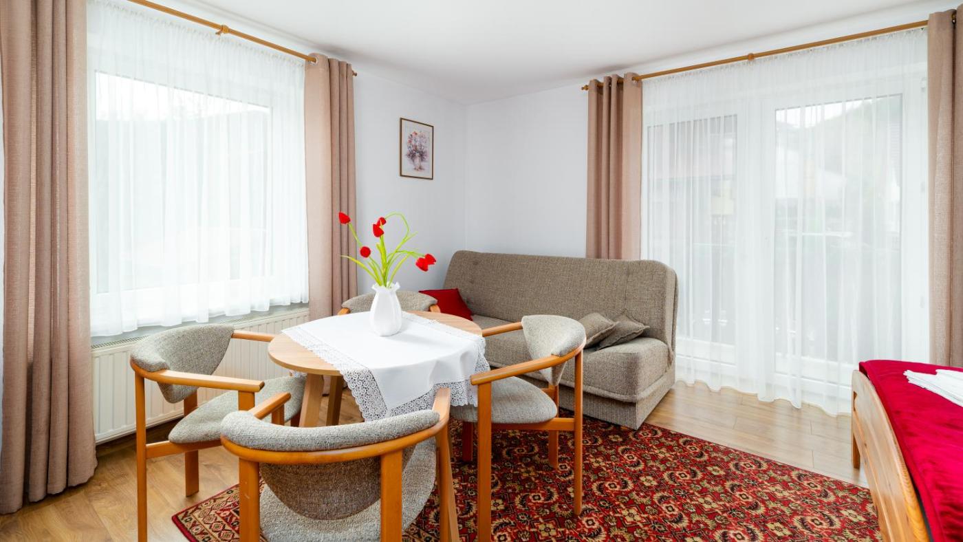 Pokój Czteroosobowy. The quadruple room offers parquet floors, a tiled floor, as well as a private bathroom boasting a shower. The quadruple room features soundproof walls, a tea and coffee maker, a wardrobe, a flat-screen TV with cable channels, as well as mountain views. The unit has 3 beds. Pokój Czteroosobowy - 4 osobowy. Powierzchnia pokoju ok.: 21 mkw. ;