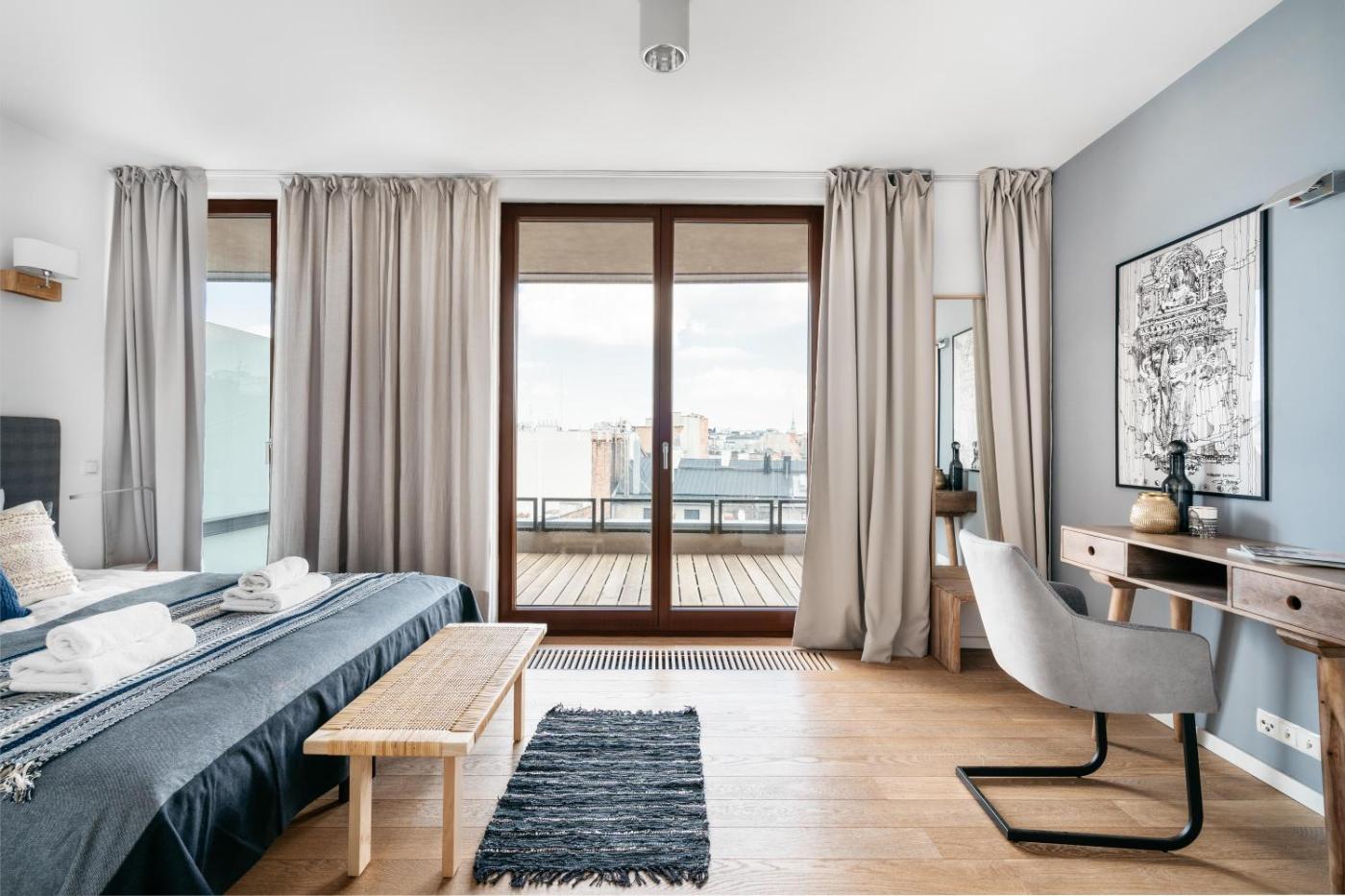Apartament z 3 sypialniami. Boasting a private entrance, this air-conditioned apartment includes 1 living room, 3 separate bedrooms and 3 bathrooms with a bath and a shower. In the well-fitted kitchen, guests will find a stovetop, a refrigerator, a dishwasher and kitchenware. The spacious apartment offers soundproof walls, a tea and coffee maker, a seating area, a flat-screen TV with cable channels, as well as city views. The unit has 4 beds. Apartament - 9 osobowy. Powierzchnia pokoju ok.: 125 mkw.