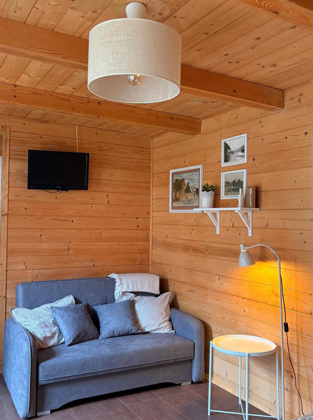 Domek. Boasting a private entrance, this chalet also features 1 bedroom, a seating area and 1 bathroom with a shower and a hairdryer. Guests will find a stovetop, a refrigerator and kitchenware in the kitchen. The chalet also comes with a barbecue. The chalet features a dining area, a wardrobe, an electric kettle, a flat-screen TV with cable channels, as well as garden views. The unit has 2 beds. Domek - 4 osobowy. Powierzchnia pokoju ok.: 24 mkw.