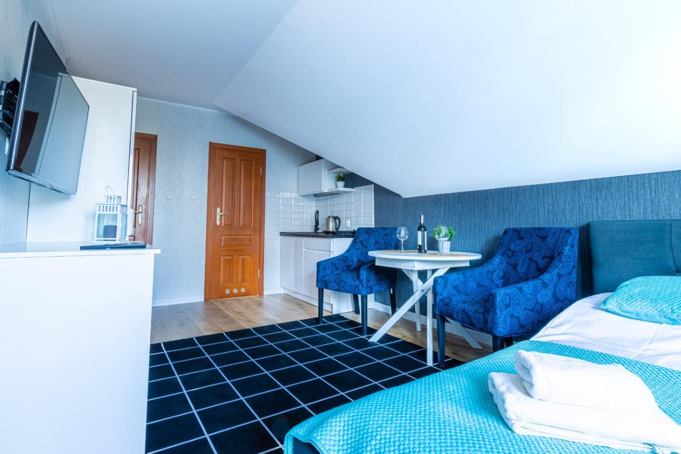 Pokój dwuosobowy. The double room provides air conditioning, a wardrobe, as well as a private bathroom featuring a shower and a hairdryer. Meals can be prepared in the kitchenette, which is equipped with a stovetop, a refrigerator, kitchenware and an electric kettle. This double room features a high chair for children, parquet floors, flat-screen TV, as well as chocolate for guests. The unit offers 1 bed. Pokój Dwuosobowy - 2 osobowy. Powierzchnia pokoju ok.: 16 mkw. ;