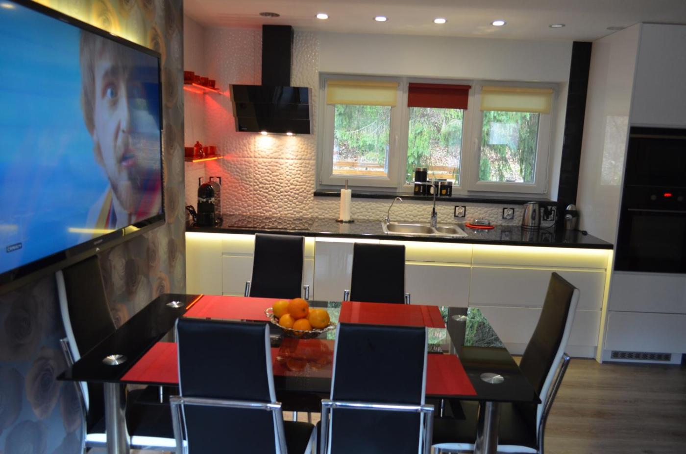 Apartament. Apartament wyposażony jest w przybory kuchenne. Apartament - 5 osobowy. Powierzchnia pokoju ok.: 40 mkw. ;