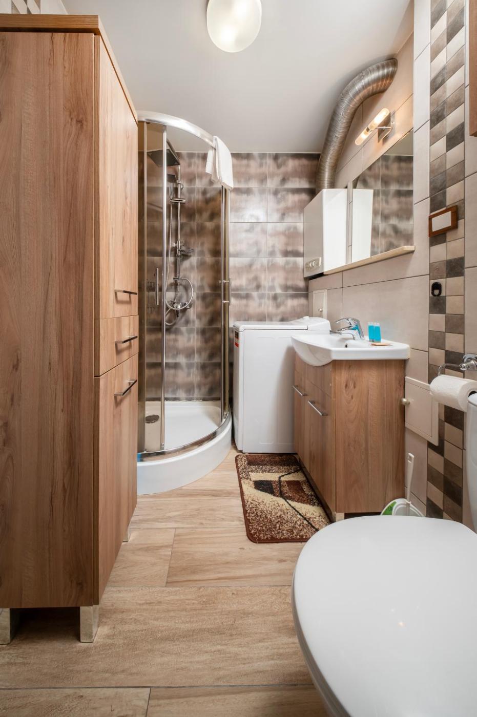 Studio z rozkładaną sofą. Featuring free toiletries, this studio includes a private bathroom with a shower and a hairdryer. Meals can be prepared in the kitchen, which features a stovetop, a refrigerator, kitchenware and a toaster. The studio features a washing machine, a private entrance, a tea and coffee maker, a seating area and a flat-screen TV with satellite channels. The unit has 1 bed. Studio - 2 osobowy. Powierzchnia pokoju ok.: 25 mkw.