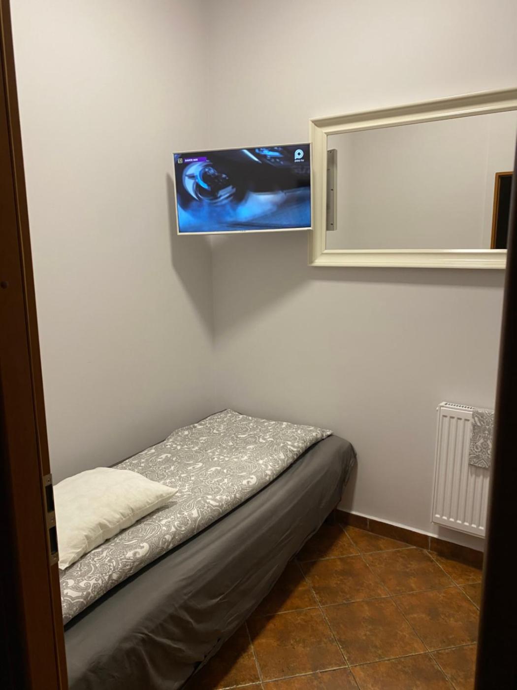 Pokój trzyosobowy typu Economy ze wspólną łazienką. The triple room offers a wardrobe, a tiled floor and heating. The unit has 3 beds. Pokój Trzyosobowy - 3 osobowy. Powierzchnia pokoju ok.: 16 mkw.