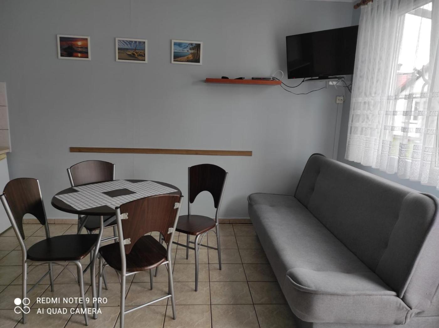 Domek z 1 sypialnią. Featuring a private entrance, this air-conditioned chalet is comprised of 1 living room, 1 separate bedroom and 1 bathroom with a bath or a shower. Guests will find a stovetop, a refrigerator, kitchenware and a tea and coffee maker in the fully equipped kitchenette. The chalet also has a barbecue. This chalet features a dining area, a wardrobe, a flat-screen TV and a terrace. The unit offers 3 beds. Domek - 5 osobowy. Powierzchnia pokoju ok.: 27 mkw. ;