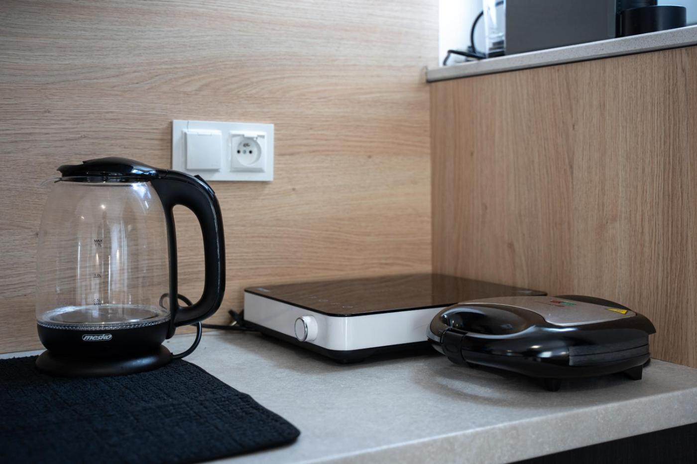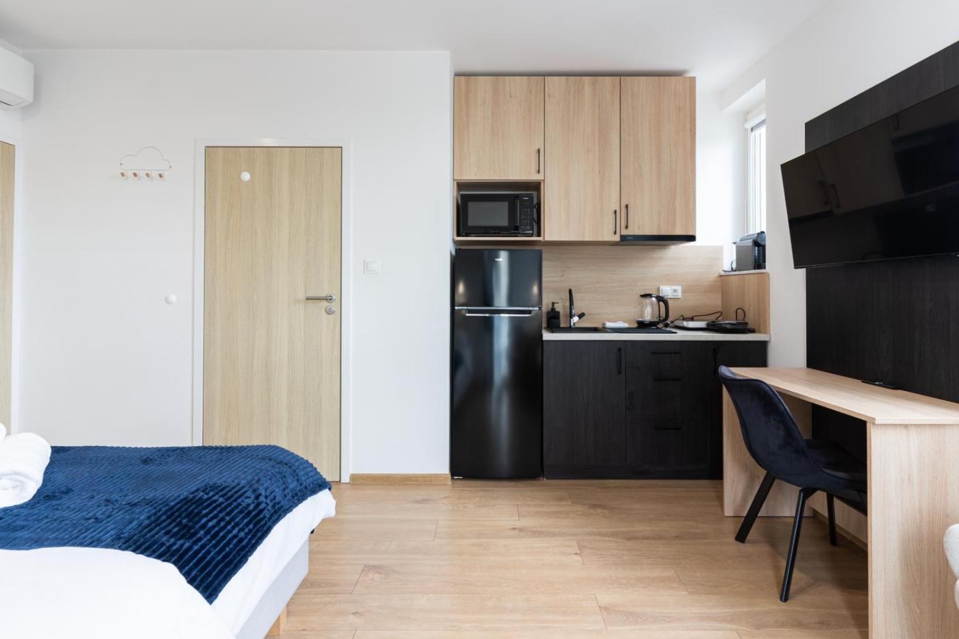 Studio z balkonem. Offering free toiletries, this studio includes a private bathroom with a shower and a hairdryer. In the well-fitted kitchenette, guests will find a stovetop, a refrigerator, kitchenware and a microwave. This studio is air-conditioned and has a seating area with a flat-screen TV, a washing machine, a private entrance, a tea and coffee maker, as well as a dining area. The unit has 1 bed. Studio - 2 osobowy. Powierzchnia pokoju ok.: 20 mkw.