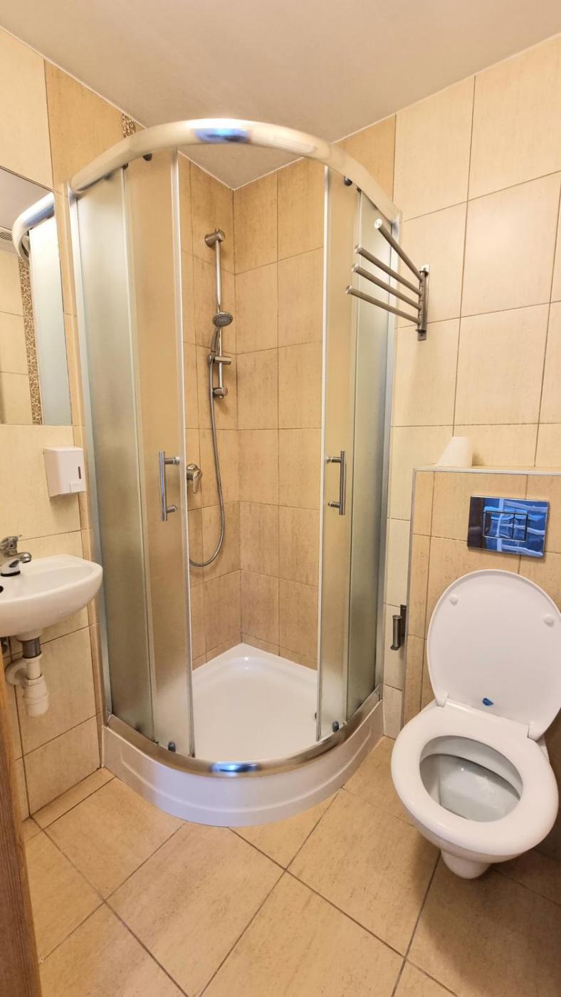 Studio. The studio offers a sofa, parquet floors, as well as a private bathroom featuring a shower and a hairdryer. In the kitchenette, guests will find a stovetop, a refrigerator and kitchenware. The studio provides a flat-screen TV with cable channels, a washing machine, a wardrobe, an electric kettle as well as city views. The unit offers 2 beds. Studio - 4 osobowy. Powierzchnia pokoju ok.: 20 mkw. ;