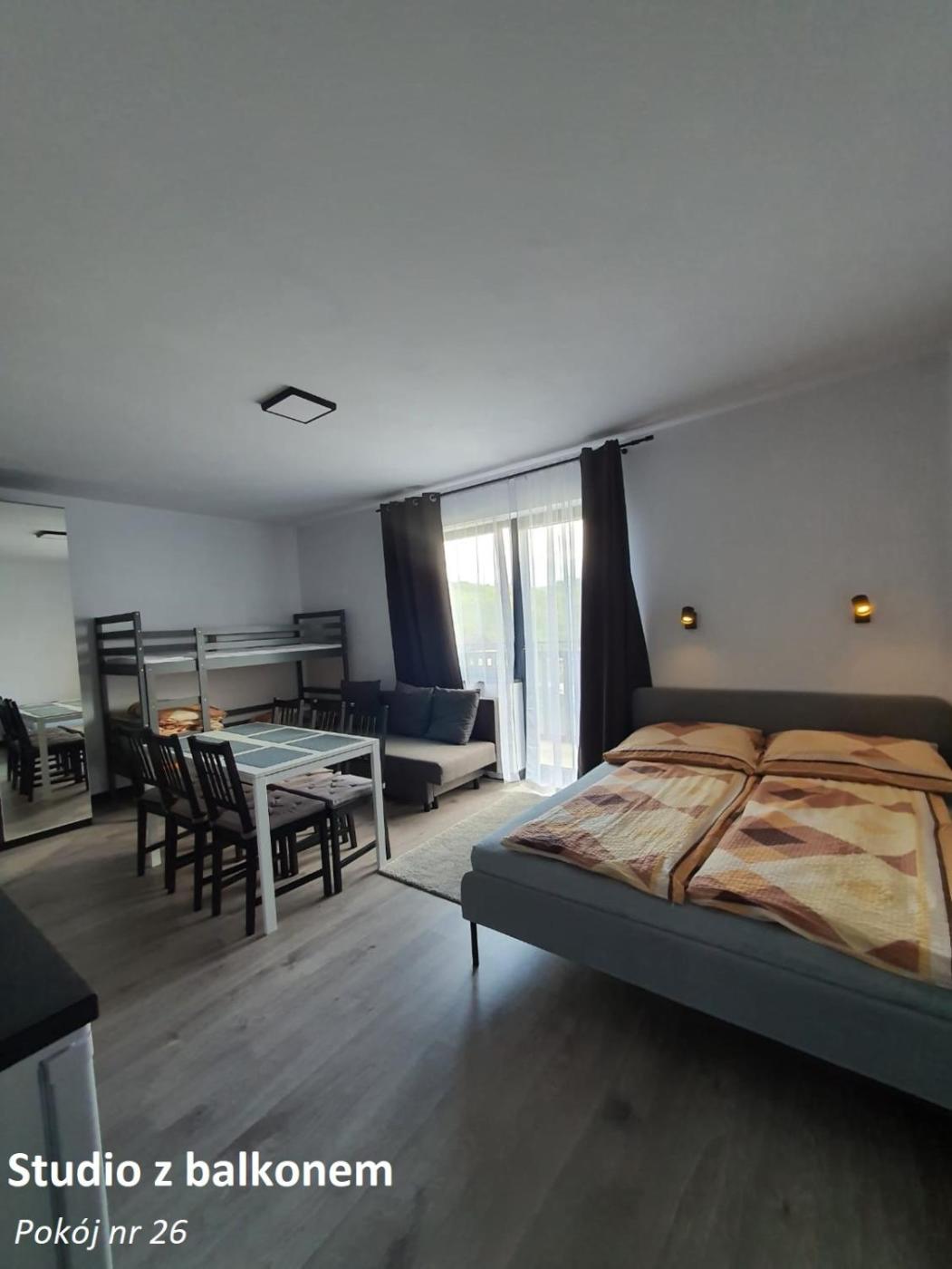 Studio z balkonem. Guests can make meals in the kitchenette that features a refrigerator, a microwave and an electric kettle. This studio is comprised of a flat-screen TV with satellite channels, a private bathroom as well as a balcony with garden views. The unit has 3 beds. Studio - 6 osobowy. Powierzchnia pokoju ok.: 21 mkw. ;