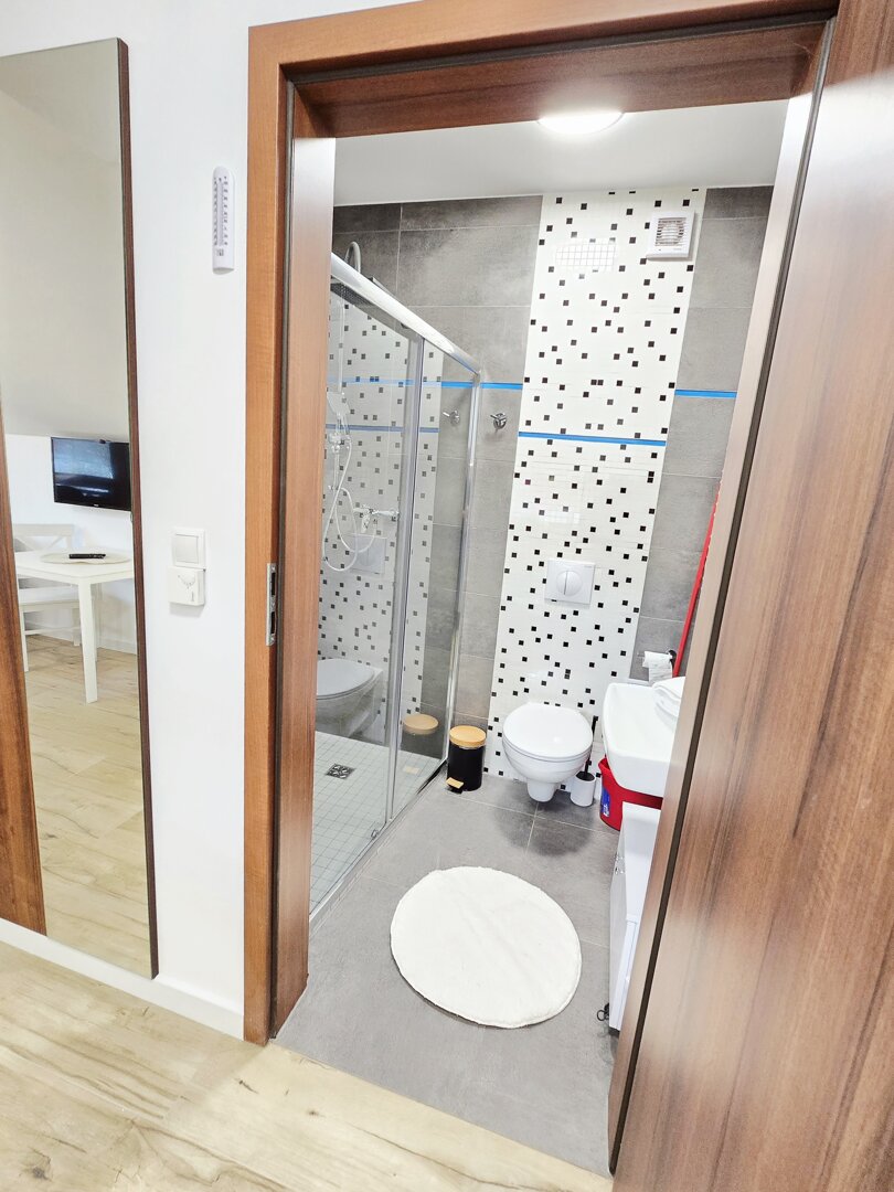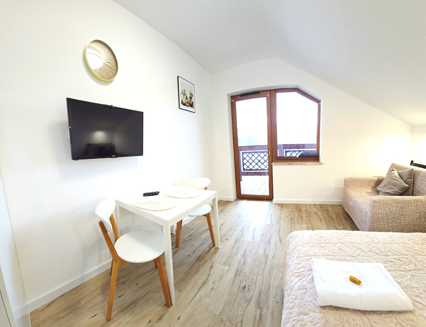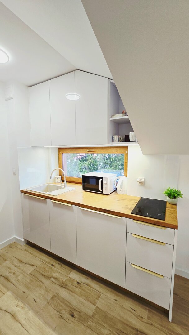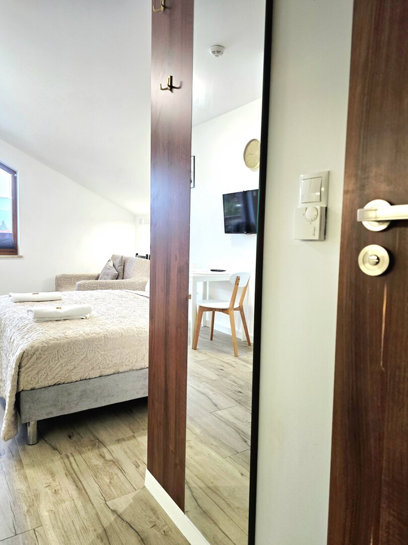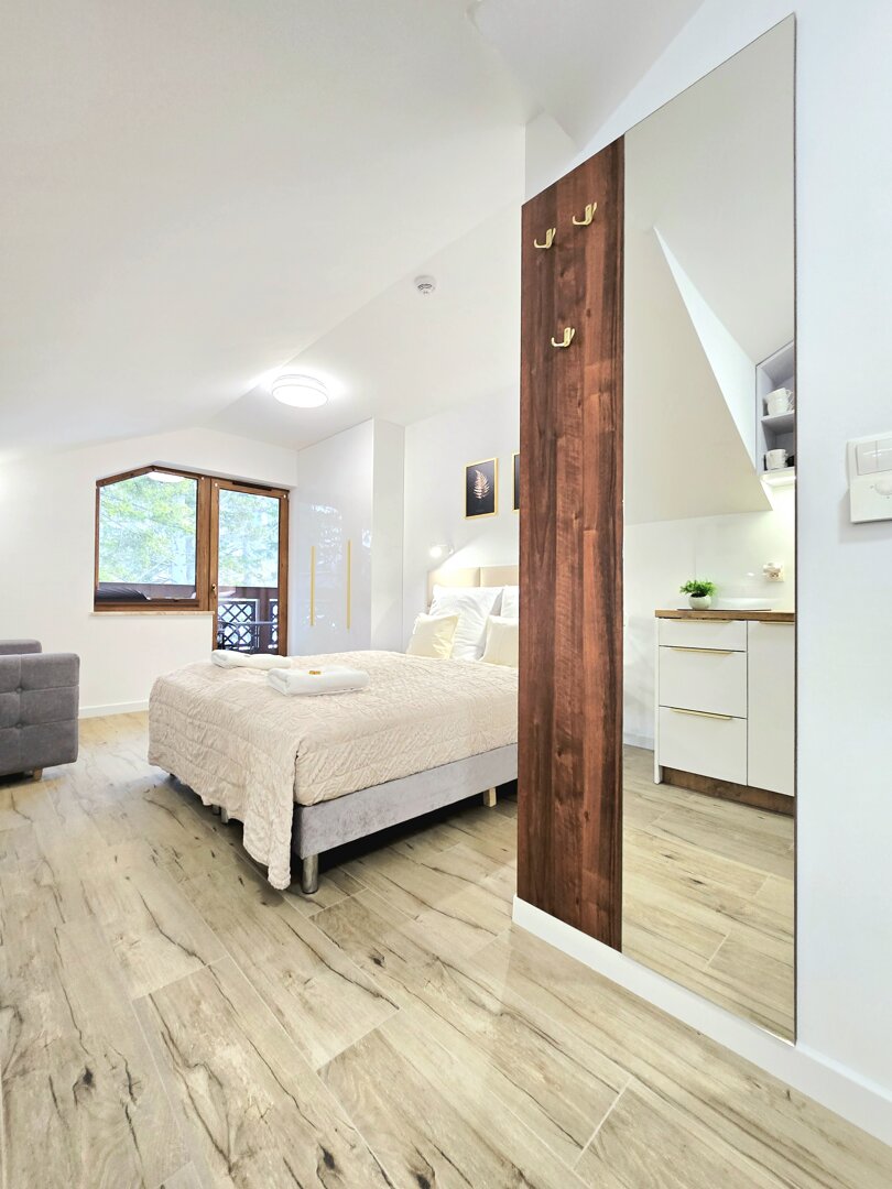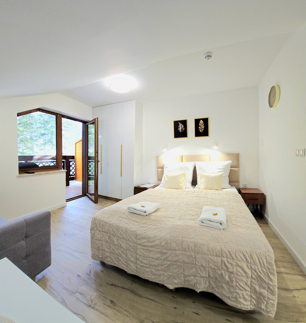 Klimatyczny apartament z widokiem na zieloną część posesji wewnętrznej - świerki, strumyk, zieleń. Opis Apartamentu: Lokalizacja: Apartament znajduje się w malowniczym mieście Szklarska Poręba, otoczonym majestatycznymi szczytami Karkonoszy. Idealne miejsce dla miłośników górskich wycieczek i pięknych widoków. W centrum miasta. Pomieszczenie: Otwarty pokój z aneksem kuchennym: Pokój: W centrum znajduje się stół oraz krzesła, telewizor, sprzęt do prasowania, odkurzacz. Aneks kuchenny: W pełni wyposażony w sprzęty AGD oraz sprzęt do przygotowania posiłków, kafeterka właska, ekspres przelewowy. Szafki i blat oferują dużo miejsca na przechowywanie i przygotowywanie posiłków. Część sypialnia główna: sypialnia z wygodnymi łóżkami pojedynczymi zestawionymi, szafkami nocnymi i przestronną szafą oraz rozkładana sofa, na której zmieści się 1 osoba dorosła lub 2 dzieci do 12 lat. Wystrój utrzymany w ciepłych, relaksujących kolorach. Łazienka: Nowoczesna łazienka z dużym prysznicem, umywalką, lustrem i toaletą. Dodatkowe udogodnienia: Przechowalnia rowerów czy sprzętu narciarskiego w budynku. Parking: Miejsce parkingowe dla mieszkańców apartamentu.