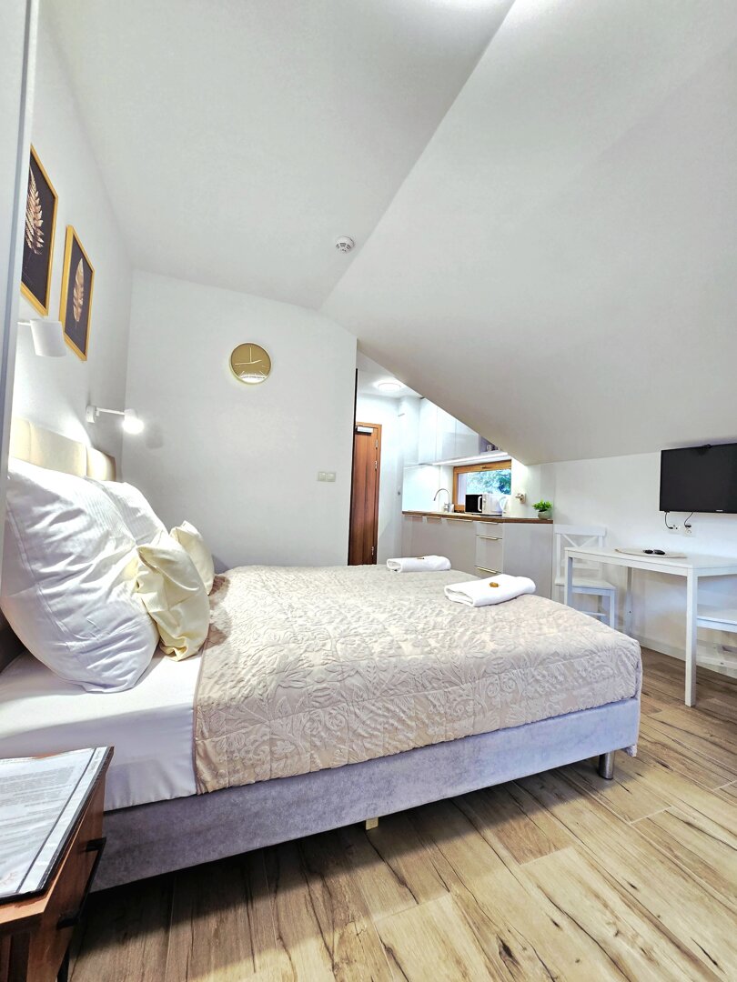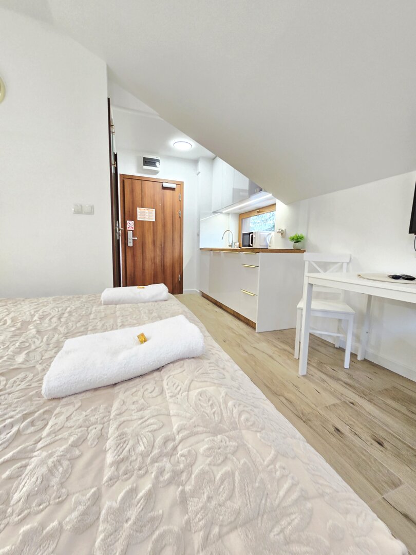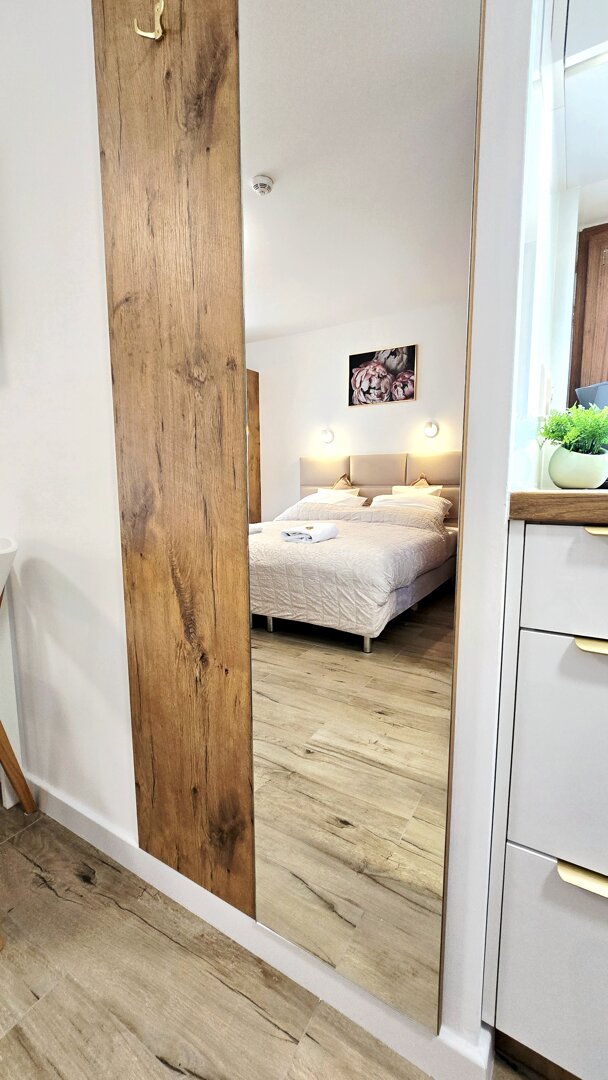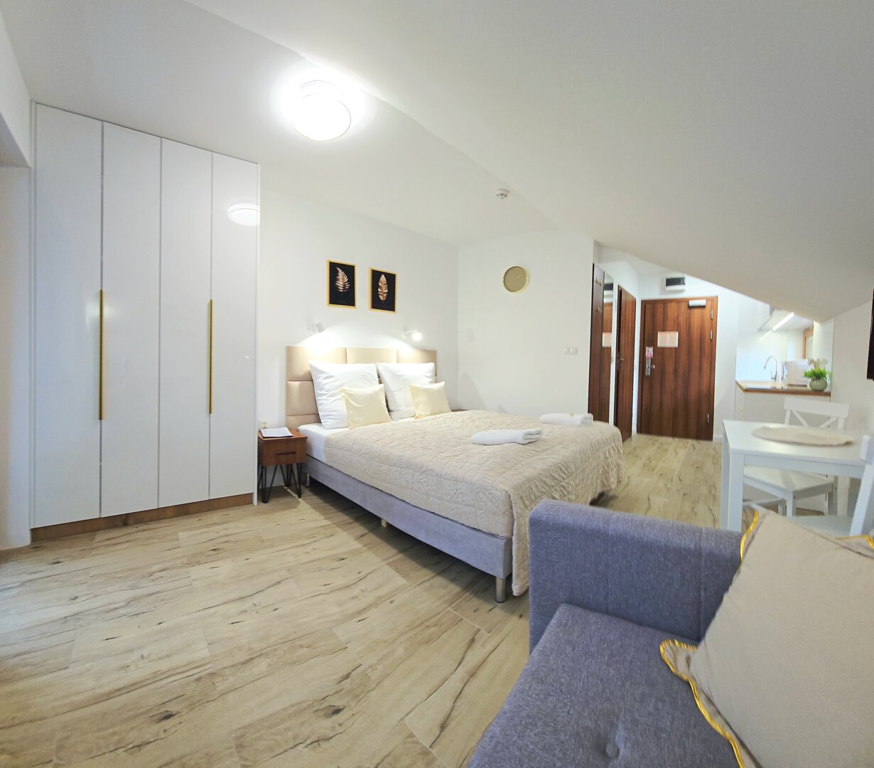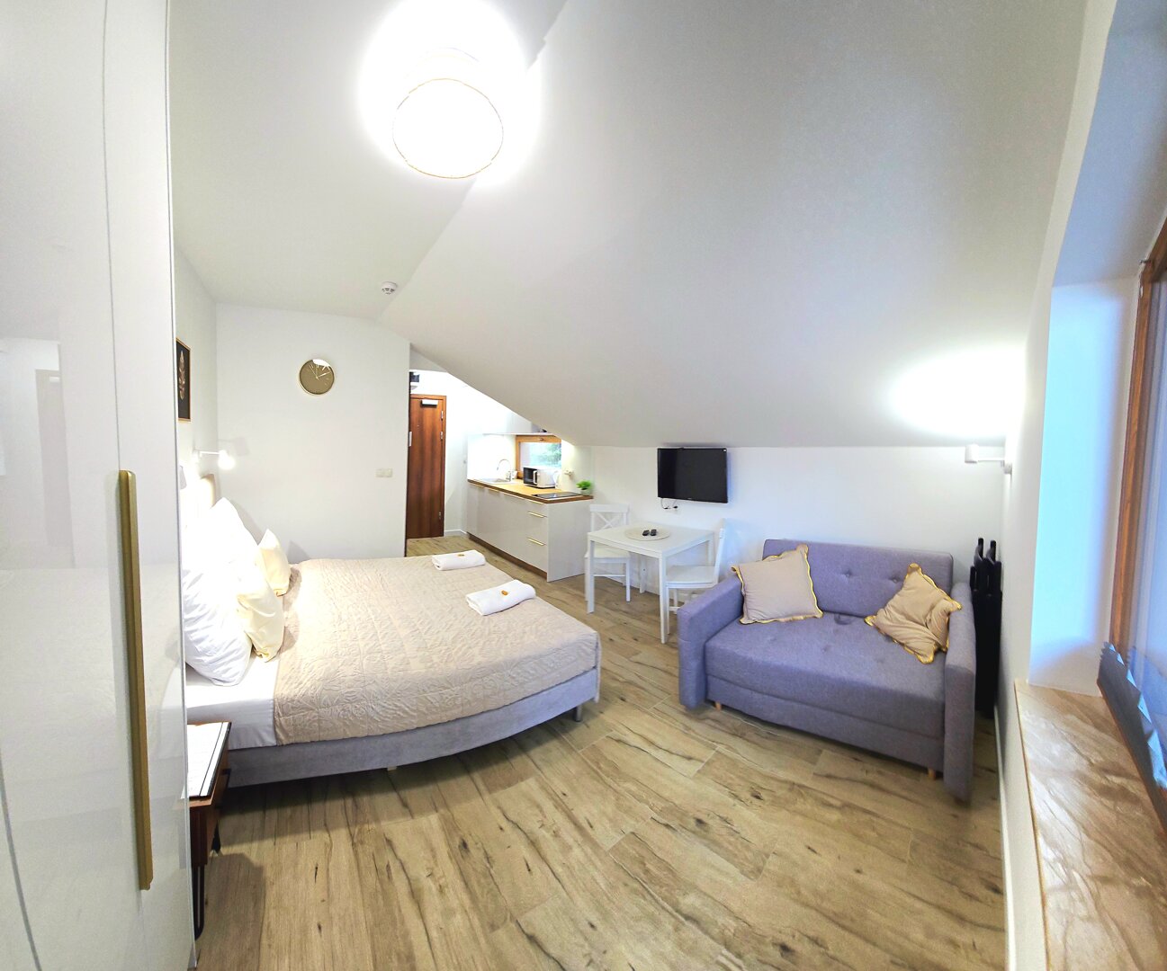Klimatyczny apartament z widokiem na zieloną część posesji wewnętrznej - świerki, strumyk, zieleń. Opis Apartamentu: Lokalizacja: Apartament znajduje się w malowniczym mieście Szklarska Poręba, otoczonym majestatycznymi szczytami Karkonoszy. Idealne miejsce dla miłośników górskich wycieczek i pięknych widoków. W centrum miasta. Pomieszczenie: Otwarty pokój z aneksem kuchennym: Pokój: W centrum znajduje się stół oraz krzesła, telewizor, sprzęt do prasowania, odkurzacz. Aneks kuchenny: W pełni wyposażony w sprzęty AGD oraz sprzęt do przygotowania posiłków, kafeterka właska, ekspres przelewowy. Szafki i blat oferują dużo miejsca na przechowywanie i przygotowywanie posiłków. Część sypialnia główna: sypialnia z wygodnymi łóżkami pojedynczymi zestawionymi, szafkami nocnymi i przestronną szafą oraz rozkładana sofa, na której zmieści się 1 osoba dorosła lub 2 dzieci do 12 lat. Wystrój utrzymany w ciepłych, relaksujących kolorach. Łazienka: Nowoczesna łazienka z dużym prysznicem, umywalką, lustrem i toaletą. Dodatkowe udogodnienia: Przechowalnia rowerów czy sprzętu narciarskiego w budynku. Parking: Miejsce parkingowe dla mieszkańców apartamentu.