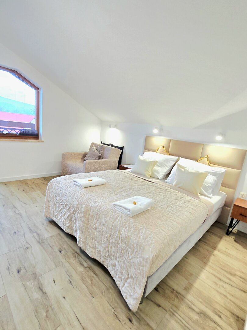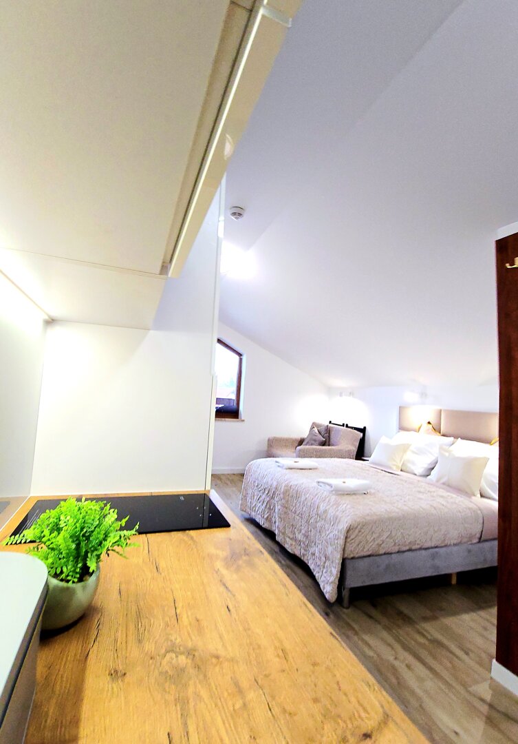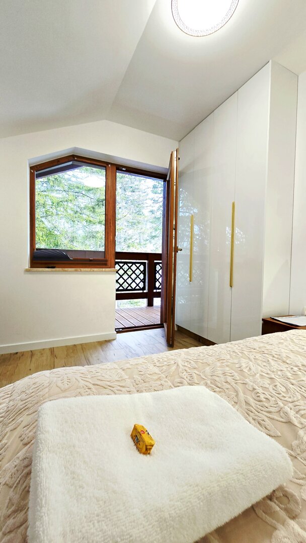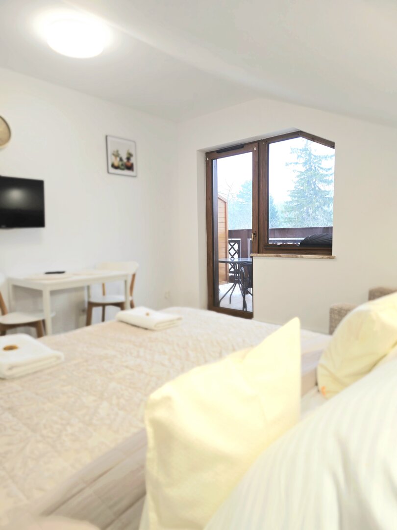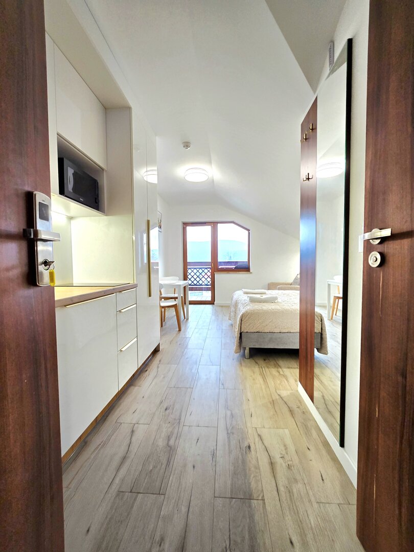 apartament usytuowany na 3 piętrze (winda w budynku) z pięknym widokiem na Pogórze Izerskie wraz z Wysokim Kamieniem. Opis Apartamentu: Lokalizacja: Apartament znajduje się w malowniczym mieście Szklarska Poręba, otoczonym majestatycznymi szczytami Karkonoszy. Idealne miejsce dla miłośników górskich wycieczek i pięknych widoków. W centrum miasta. Pomieszczenie: Otwarty pokój z aneksem kuchennym: Pokój: W centrum znajduje się stół oraz krzesła, telewizor, sprzęt do prasowania, odkurzacz. Aneks kuchenny: W pełni wyposażony w sprzęty AGD oraz sprzęt do przygotowania posiłków, kafeterka właska, ekspres przelewowy. Szafki i blat oferują dużo miejsca na przechowywanie i przygotowywanie posiłków. Część sypialnia główna: sypialnia z wygodnymi łóżkami pojedynczymi zestawionymi, szafkami nocnymi i przestronną szafą oraz pojedyncza rozkładana sofka. Wystrój utrzymany w ciepłych, relaksujących kolorach. Łazienka: Nowoczesna łazienka z dużym prysznicem, umywalką, lustrem i toaletą. Dodatkowe udogodnienia: Przechowalnia rowerów czy sprzętu narciarskiego w budynku. Parking: Miejsce parkingowe dla mieszkańców apartamentu.