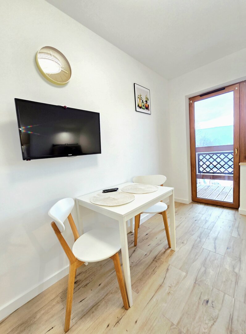 Apartament usytuowany na 2 piętrze z widokiem na Karkonosze Opis Apartamentu: Lokalizacja: Apartament znajduje się w malowniczym mieście Szklarska Poręba, otoczonym majestatycznymi szczytami Karkonoszy. Idealne miejsce dla miłośników górskich wycieczek i pięknych widoków. W centrum miasta. Pomieszczenie: Otwarty pokój z aneksem kuchennym: Pokój: W centrum znajduje się stół oraz krzesła, telewizor, sprzęt do prasowania, odkurzacz. Aneks kuchenny: W pełni wyposażony w sprzęty AGD oraz sprzęt do przygotowania posiłków, kafeterka włoska, ekspres przelewowy, zmywarka. Szafki i blat oferują dużo miejsca na przechowywanie i przygotowywanie posiłków. Część sypialnia główna: sypialnia z wygodnymi łóżkami pojedynczymi zestawionymi, szafkami nocnymi i przestronną szafą oraz rozkładana sofka mogąca pomieścić 1 osobę dorosłą lub 2 małych dzieci do 12 lat. Wystrój utrzymany w ciepłych, relaksujących kolorach. Łazienka: Nowoczesna łazienka z dużym prysznicem, umywalką, lustrem i toaletą. Dodatkowe udogodnienia: Przechowalnia rowerów czy sprzętu narciarskiego w budynku. Parking: Miejsce parkingowe dla mieszkańców apartamentu.