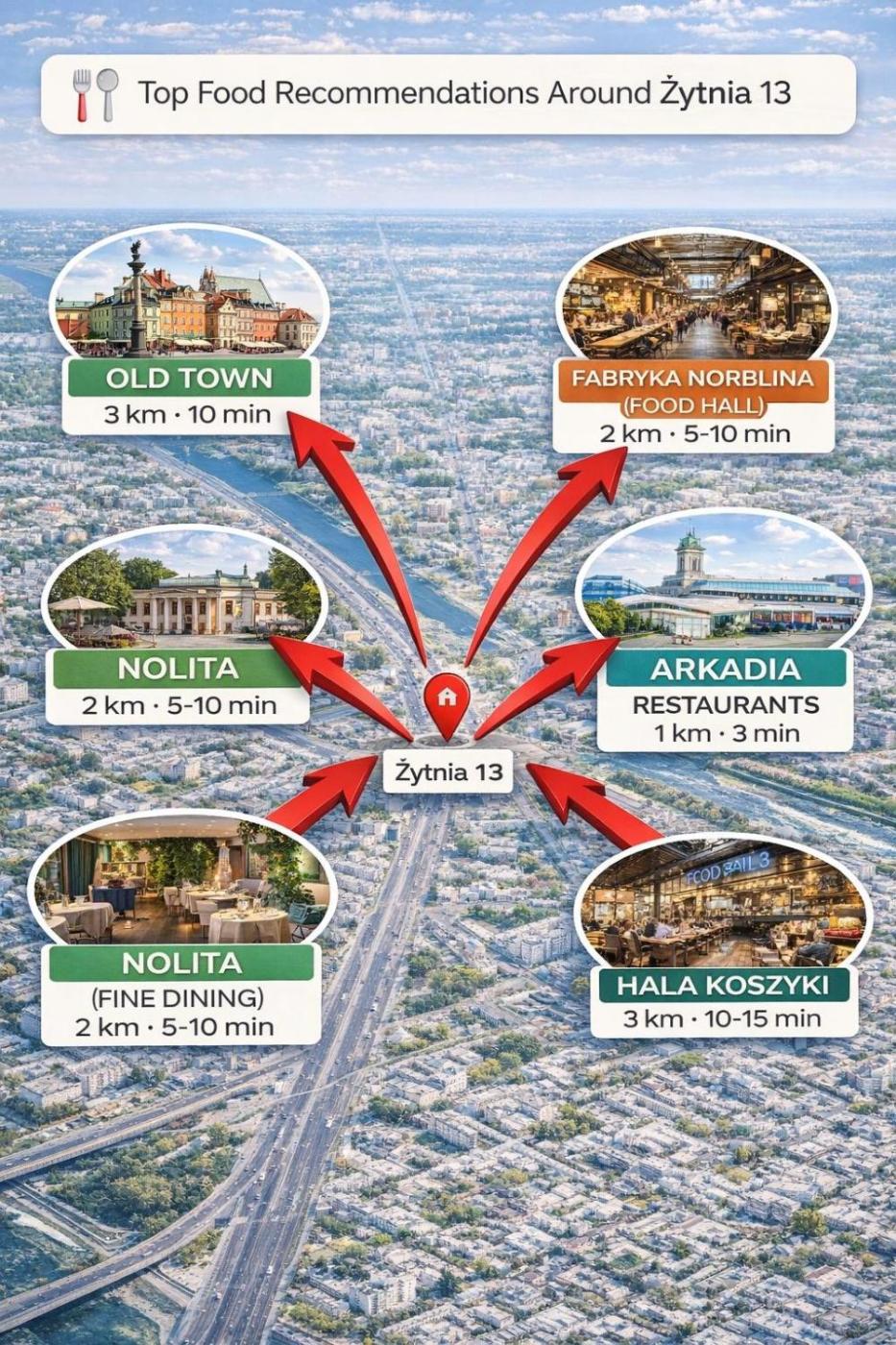 Odległość ważnych miejsc od obiektu: Teatr Wielki - Opera Narodowa – 2,3 km, Ogród Saski – 2,5 km. Lotnisko Lotnisko Chopina w Warszawie znajduje się 8 km od obiektu.