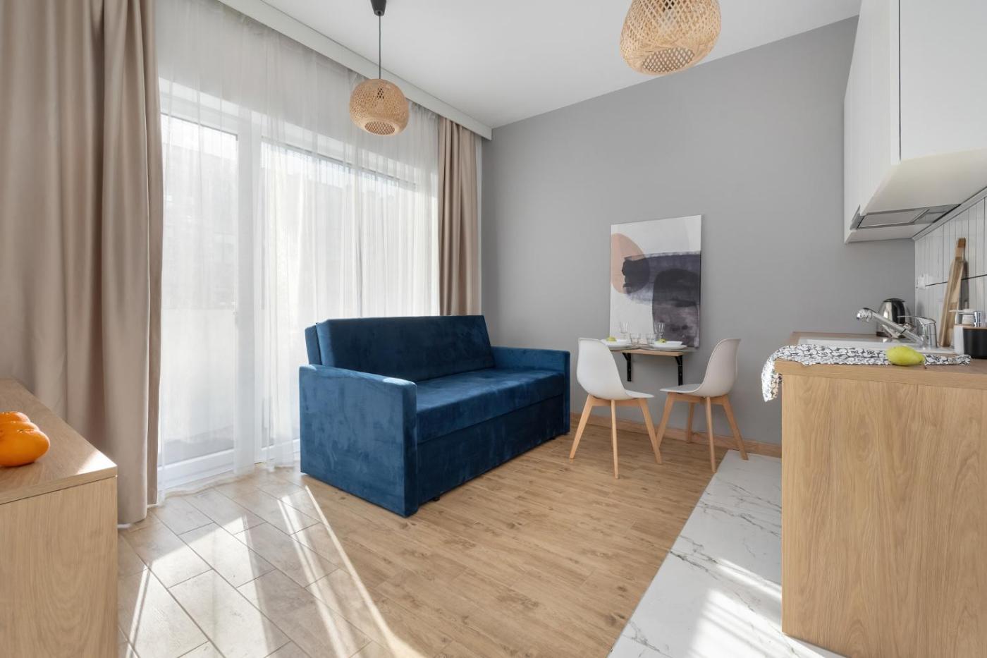 Oferta apartamentu obejmuje sypialnię (1), salon, aneks kuchenny z pełnym wyposażeniem, w tym lodówką i ekspresem do kawy, a także łazienkę (1) z prysznicem oraz bezpłatnym zestawem kosmetyków. W apartamencie zapewniono ręczniki i pościel.